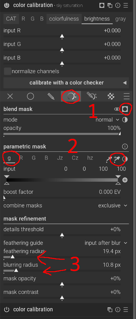 Lastly, to make the mask smoother, you can adjust the feathering and blur radius. This isn’t always necessary, but it can make the effect of the module blend more naturally into the image. The screenshot below illustrates the process.